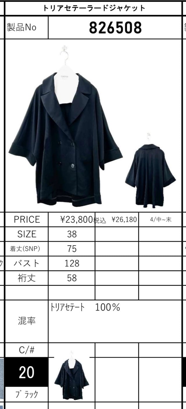 トリアセテーラードジャケット 826508