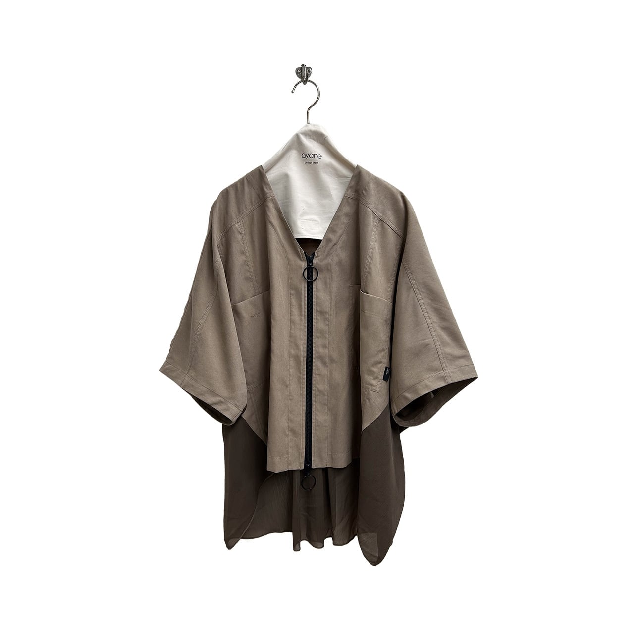 やわらかなピーチスキン素材と軽やかなシフォンの組み合わせにより、ラグジュアリーな印象を与えるデザインです。